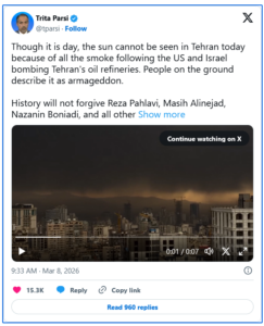 “By targeting fuel depots, the aggressors are releasing hazardous materials and toxic substances into the air, poisoning civilians, devastating the environment, and endangering lives on a massive scale,” he continued. “The consequences of this environmental and humanitarian catastrophe will not be confined within Iran’s borders. These strikes constitute war crimes, crimes against humanity, and genocide—all at once.”